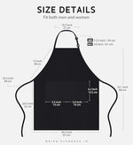 • El delantal cuenta con 2 bolsillos delanteros, cada uno de 6,2 x 5,5 pulgadas. Estos bolsillos, que se cosen cómodamente en la parte delantera, facilitan el acceso a los utensilios y herramientas durante la cocción. Con un amplio espacio de almacenamiento, pueden acomodar herramientas de cocina esenciales o incluso un teléfono inteligente, lo que los hace ideales para actividades culinarias o barbacoas.